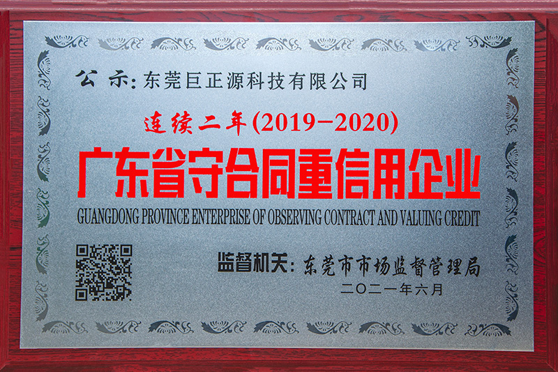 日前,廣東省市場(chǎng)監(jiān)督管理局公布了2020年度“廣東省守合同重信用企業(yè)”公示名單,東莞巨正源科技有限公司連續(xù)二年(2019-2020年)榮獲“廣東省守合同重信用企業(yè)”榮譽(yù)稱號(hào)。