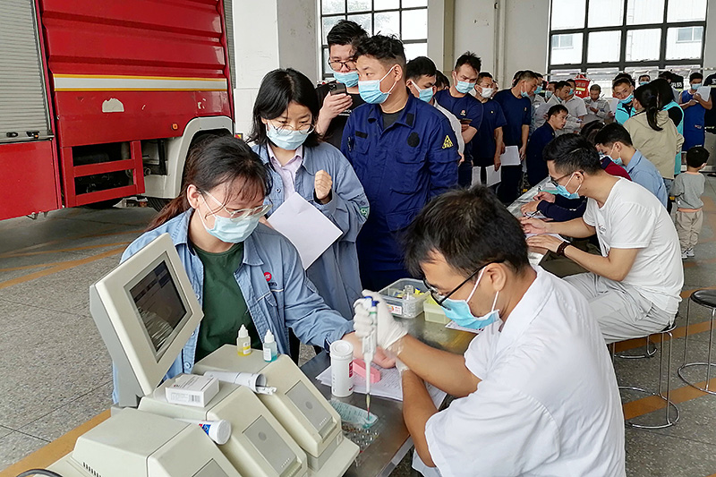 上午9:00,雖然天氣尚有一絲涼意,但無法阻擋職工獻(xiàn)血的熱情。報(bào)名參與獻(xiàn)血的員工一早趕到濱海灣消防救援大隊(duì)獻(xiàn)血現(xiàn)場(chǎng),積極配合血站工作人員做好檢查工作。大家認(rèn)真填寫登記表,測(cè)量血壓、抽血化驗(yàn),檢驗(yàn)合格后開始獻(xiàn)血……當(dāng)中有不少黨員、員工每年都參加無償獻(xiàn)血活動(dòng)。他們毫不猶豫地伸出手臂,當(dāng)飽含愛與奉獻(xiàn)的熱血從身體里緩緩流進(jìn)血漿袋時(shí),他們的臉上露出了欣慰的笑容。